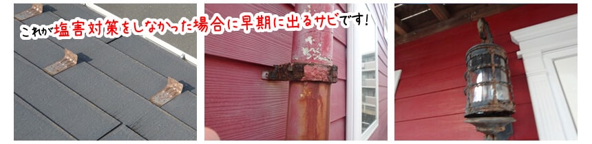 横須賀市、横浜市金沢区や磯子区、三浦市、葉山町、逗子市など、この地域は塩害を受けるエリアです。