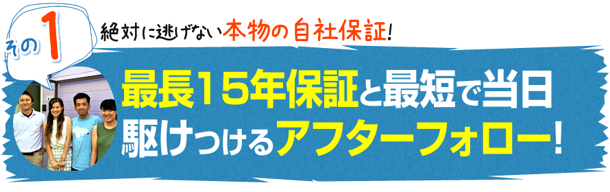 この期間内に、私どもの施工ミスによる不具合がある場合は、お電話いただき最短当時に伺うようにしています。もちろん、補修は無料です。