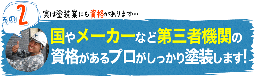 塗装業は、資格がなくても開業できますが、実は国家資格など国が発行する塗装技能士という資格があります。また、一部の審査に通った塗装店にしか使えない特殊な塗料などもあります。