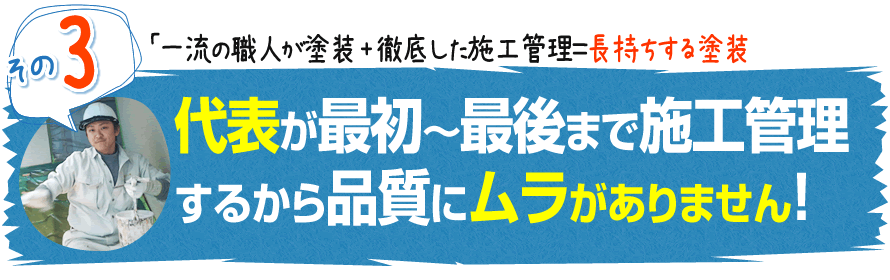 徹底した施工管理をすることで、他社が同じ塗料で塗装したとしても、私どもなら長持ちする丈夫な塗装になります。