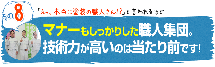 私どもの職人を見たら、「え、本当に塗装の職人さん!?」と業界のイメージが変える自信があります。