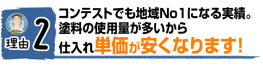 塗装店は必ず問屋かメーカーから塗料を仕入れて、お客様の家を塗装します。この仕入れのときに、年間100缶しか仕入れない塗装店と年間1,000缶仕入れる塗装店を比べると、1,000缶仕入れる塗装店の方が1缶当りの単価を安くしてもらえます。