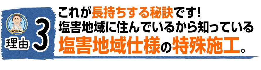 私どもは、塩害地域の特性を知っているから同じ塗料でも長持ちします。