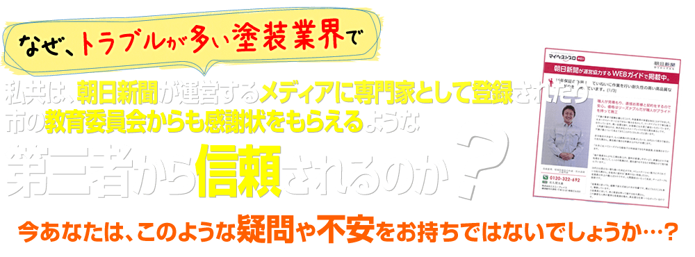 「お客様が、職人のいる会社と直接契約できれば、30%くらい安い価格で、もっと良い塗料を使い、細部までこだわった塗装ができるのに…」