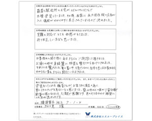 エスユープレイスでは、このようなお客様にも安心していただけるように、毎日の作業を紙に書いてお渡しします。