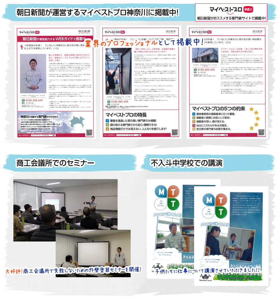最近では、朝日新聞がオススメする専門家として「マイベストプロ神奈川」して登録されたり、市の教育委員会にも「不入斗中学校の子供たちに、佐久間さんが仕事を通して経験したことを話してくれませんか?」というようなお話もいただきました。
